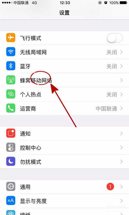 首先我们打开iPhone手机上的设置,然后点击蜂窝移动网络。