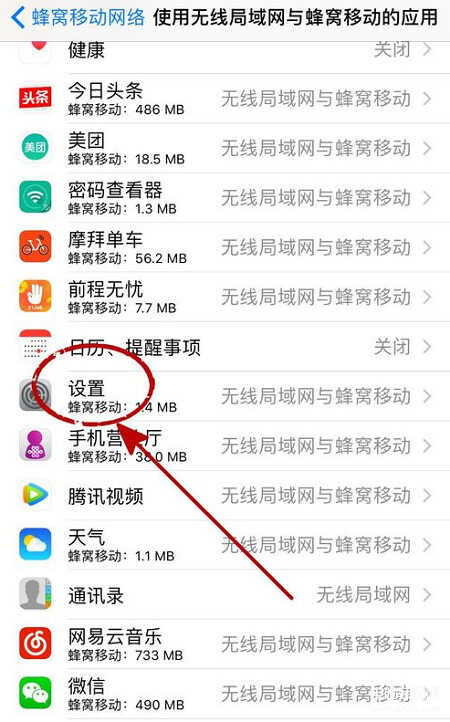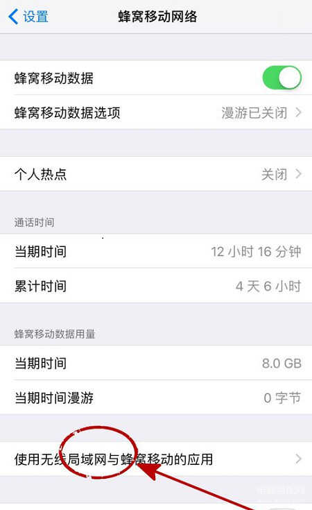 随后我们点击进入使用无线局域网与蜂窝移动的应用选项。