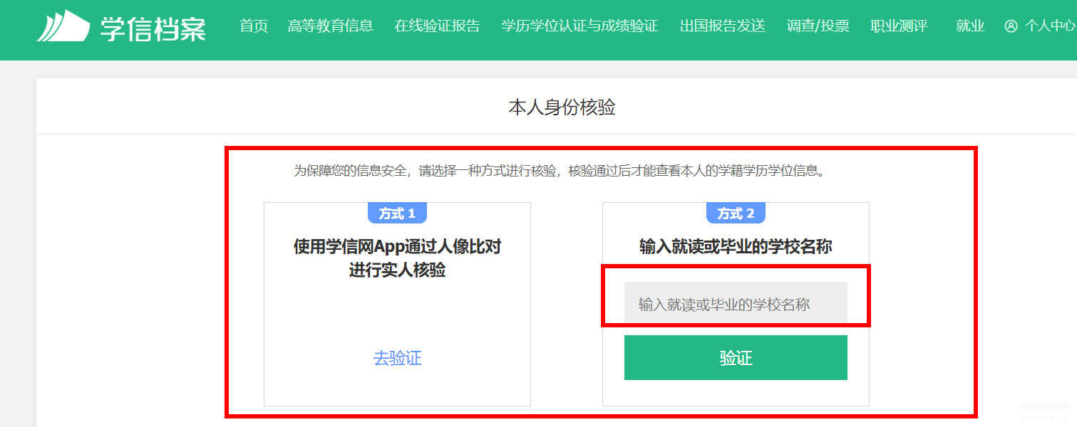 第五步:选择一种身份验证信息,比如选择方式2输入自己的学校名字: