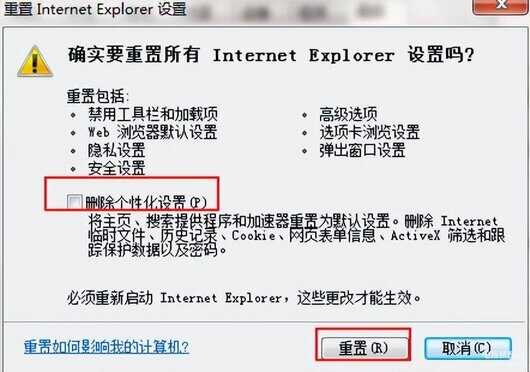 3、点击删除个性化设置,如下图所示: