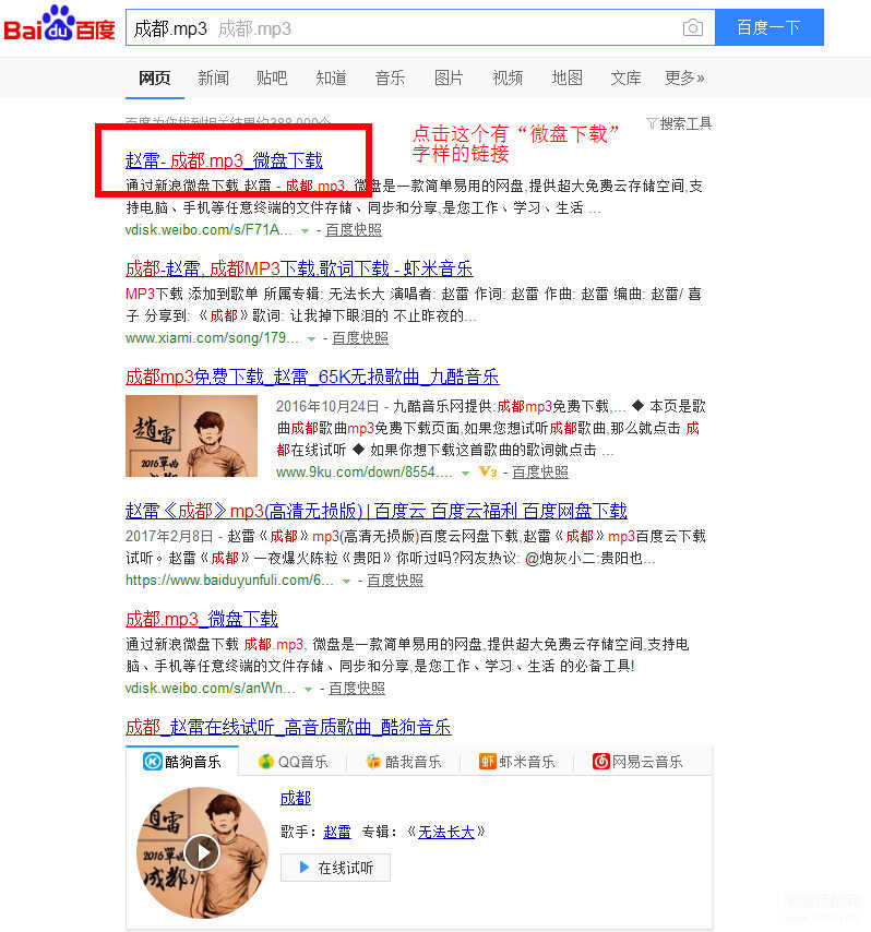 然后点击搜索结果里有“微盘下载”字样的链接: