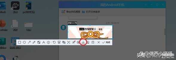 1、QQ截图使用快捷键ctrl+alt+A弹出的横条状态,找到一个向下的箭头,即是保存,如下图画圈的图标: