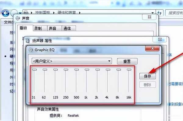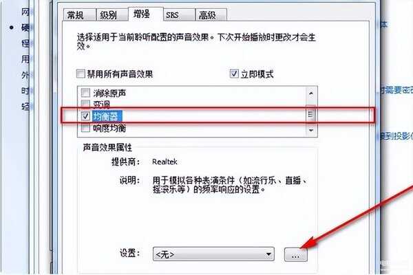 3、 增强选项卡中,勾选均衡器,将所有的声音调至最大并保存设置
