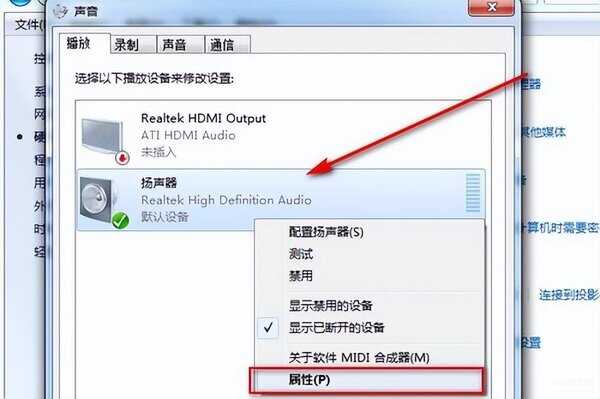 1、 进入控制面板-声音设置页面,右键扬声器,打开属性页面