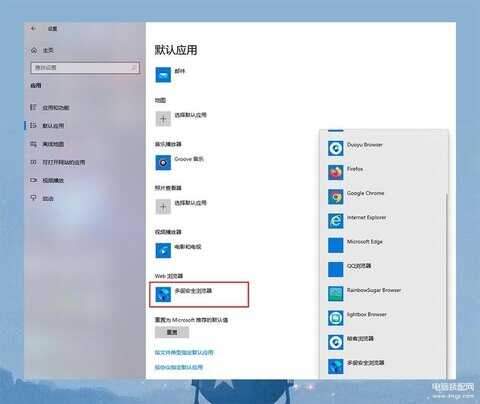 (2)在打开的设置默认应用界面中,我们找到【Web浏览器】,然后点击它,在弹出的列表中,选择多御安全浏览器为默认浏览器即可。