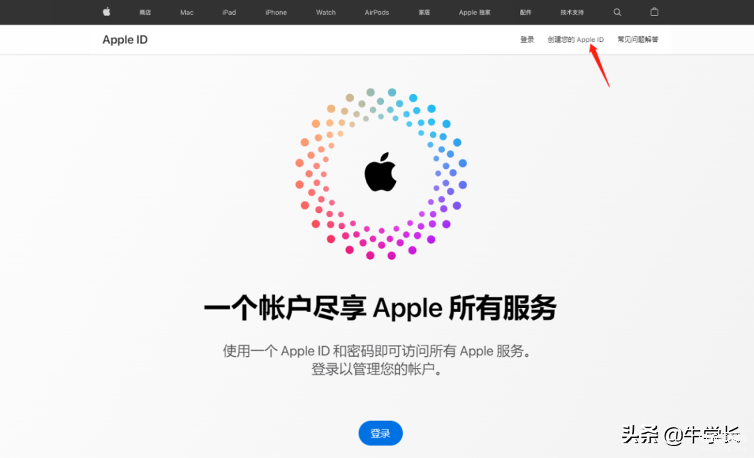 https://appleid.apple.com/,点击右上角“创建您的AppleID”,即可开始创建新的ID。