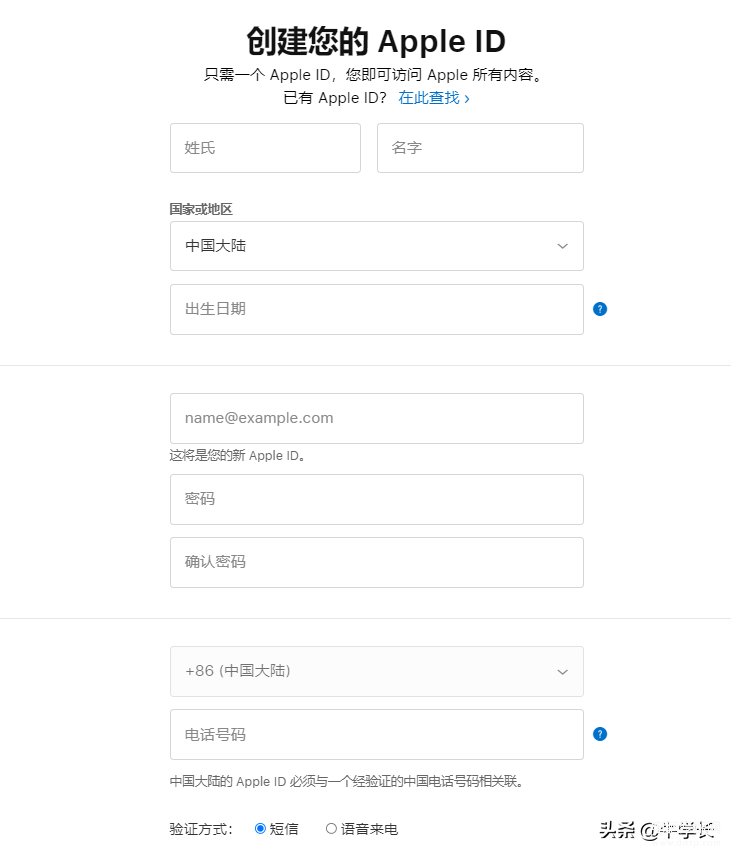 创建新ID,只需提供自己的全名、出生日期、电子邮件、电话号码,即可创建一个Apple ID账号。