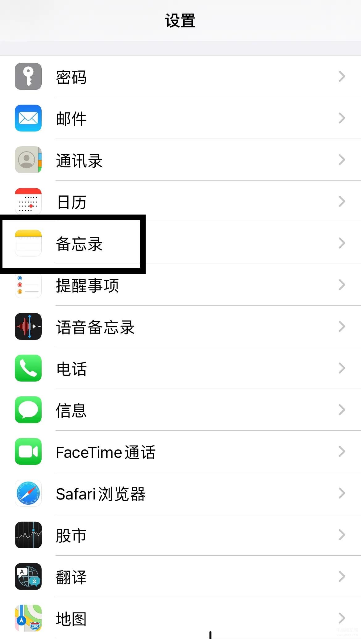 2.进入备忘录后,看到密码选项这一栏目,点击进入