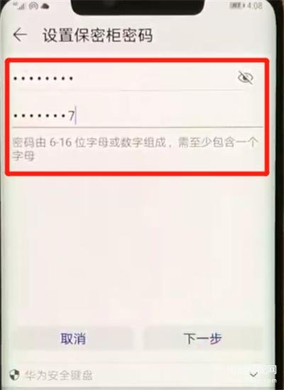3.点击内部储存,设置保密柜密码,点击下一步,设置密保问题,点击完成