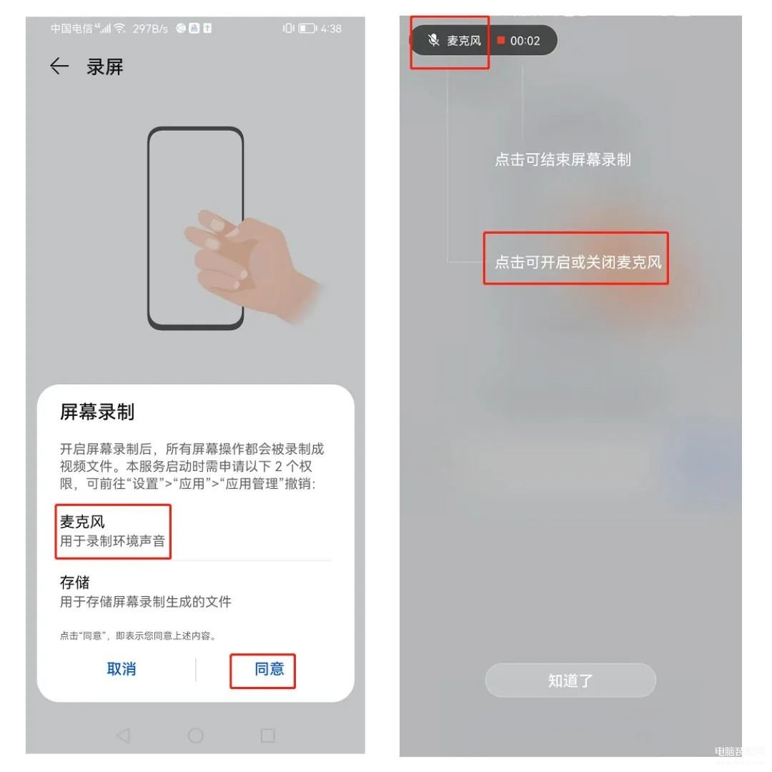 以华为手机为例,第一次开启手机自带录屏功能录屏,通常都有询问是否同意访问麦克风这一选项,点击【同意】即可。如果已经录制的视频没有声音,检查录屏时麦克风这一选项是否打开,若无,需打开才能录制声音。