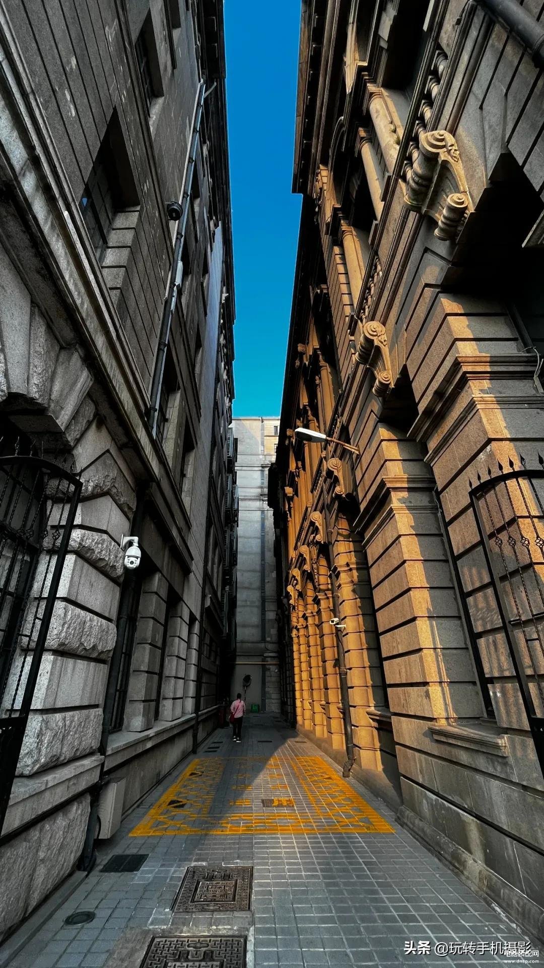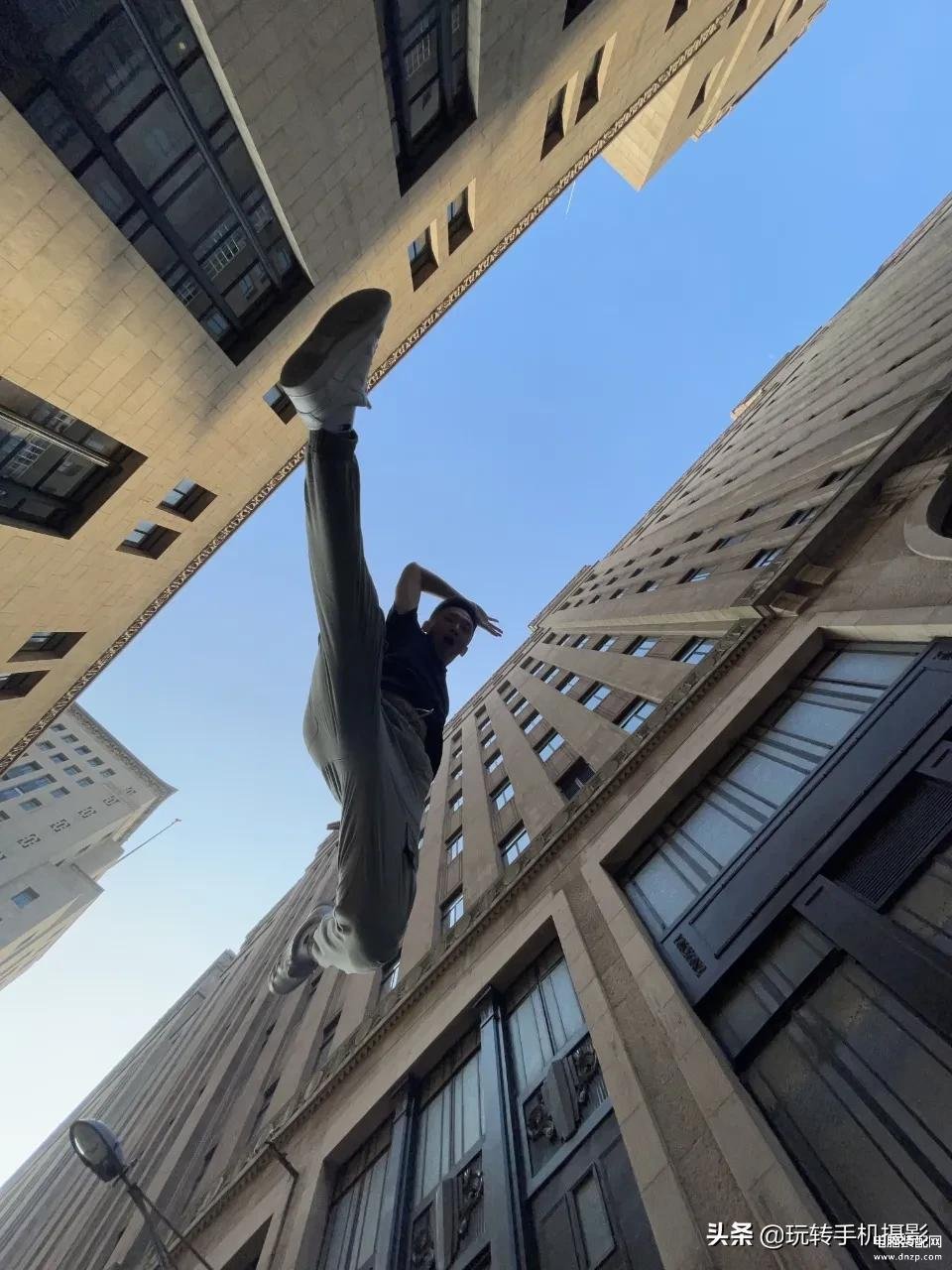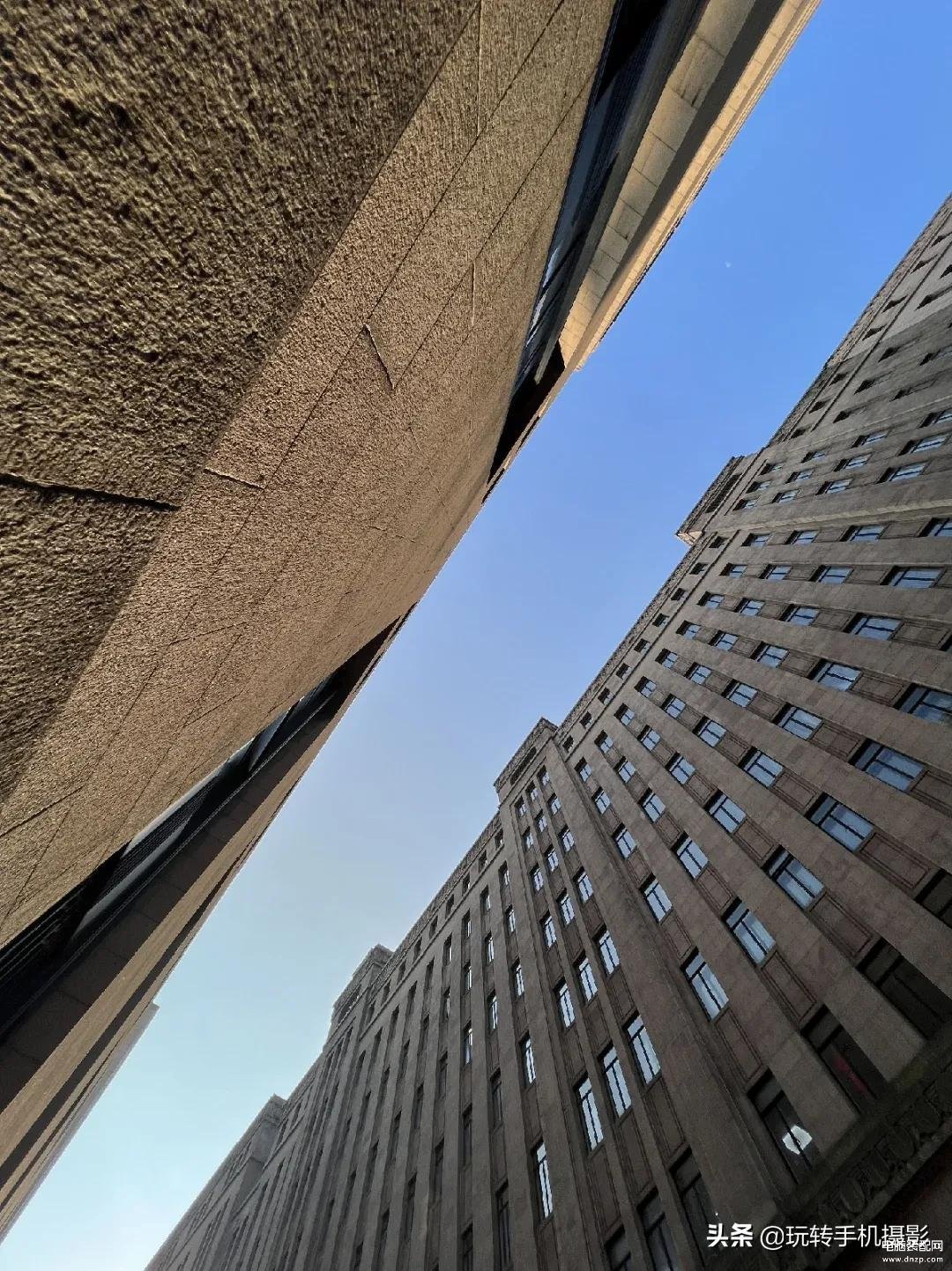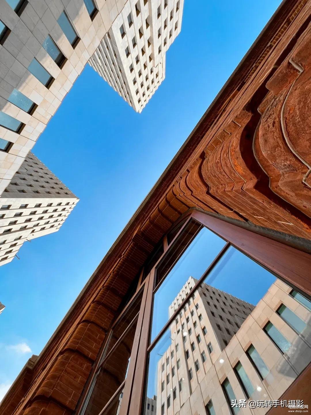 仰角度:利用超广角仰角度拍摄相较平视拍摄建筑会更显宏大,采用竖构图拍摄时,无论建筑、风光还是人像,都能更显线条的延展修长。