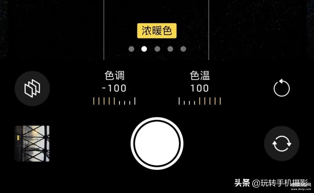 与色彩风格统一的“AI摄影”相比,iPhone 13系列的「摄影风格」更注重个人审美的差异化,在相机设置或拍界面的摄影风格选项中,左右拖移滑块可以自定义个人摄影风格,轻点取景框下方的“色调”和“色温”可更加精细化控制照片风格。
