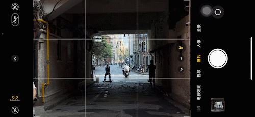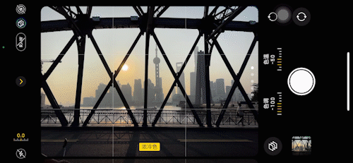 为了更加精准的控制曝光,可轻点屏幕左上角的标尺,左右移动滑块也可以手动调整曝光。这个功能可以与上面对焦框的小太阳叠加使用,让暗的更暗,亮的更亮。