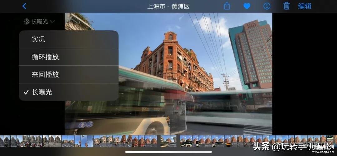除了拍摄长曝光,由于相机会记录按下快门前后1.5秒内发送的一切,所以在照片编辑中可以看到实况模式拍摄的一系列照片,可以选择任意一张设为封面。