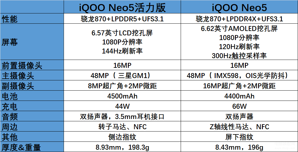 iQOO Neo5活力版和iQOO Neo5有什么区别?这个问题其实比较简单,因为二者的差异比较明显,用户根据自己的需求很好选择,二者都是骁龙870平台,性能差异不大,如果你对拍照没有多少需求,但是喜欢LCD屏幕的产品,选择iQOO Neo5活力版,如果你对拍照有一定的需求,选择iQOO Neo5,下面我们就来简单看看二者的具体配置和区别。