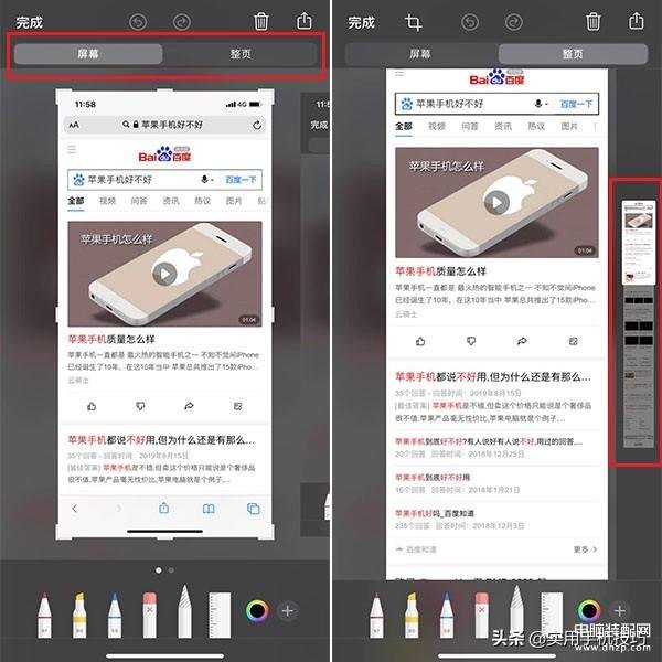 打开Safari浏览器,随意搜索一下,接着再直接截屏,这时候左下角会出现一个缩略图,我们直接点击进入截图页面,这时候在上方有"屏幕"和"整页"两个选项,屏幕就是普通的截图,而整页就是长截图了。