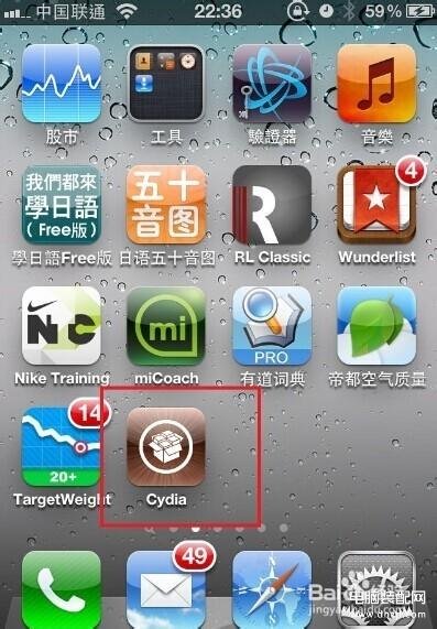 2、越狱成功后,我们在桌面找到Cydia软件图标。