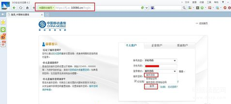 第一步,登陆中国移动官网,输入手机号,登陆模式选择服务密码(因为sim卡被锁无法接收到动态验证码),点击登陆。