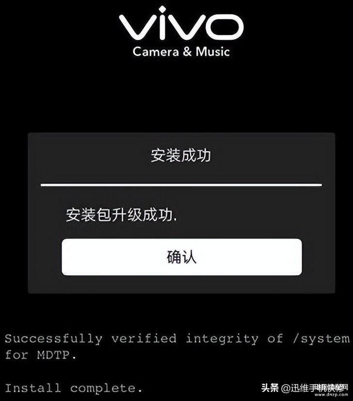 7.进度条读完后会提示安装成功,点击“确定”,手机跳转到“recovery”界面,最后重启手机就可以了。