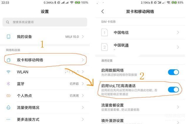 按步骤打开:手机”设置“—>”双卡和移动网络“—>”启用VoLTE高清通话“。这样设置已经打开。