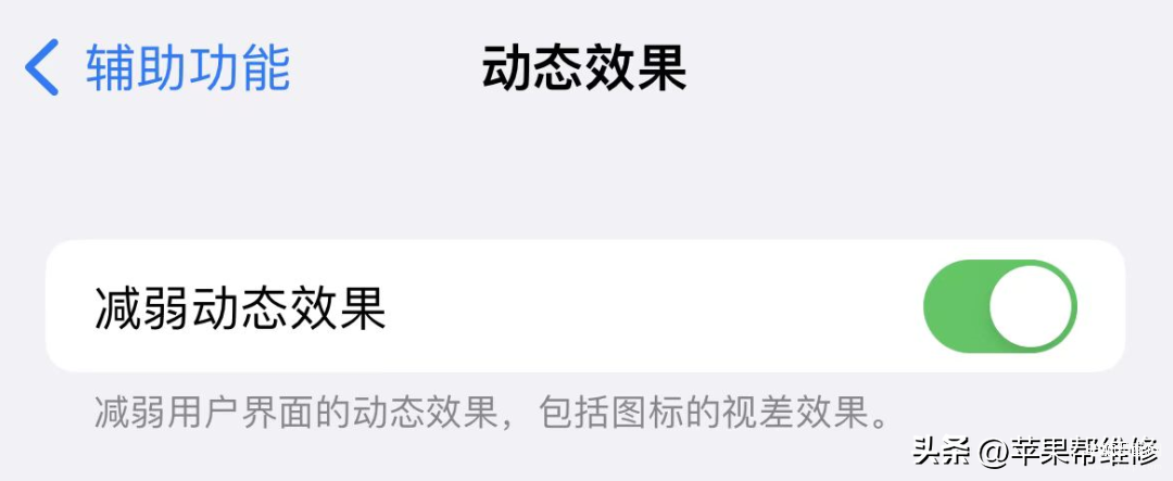 打开手机「设置」-「辅助功能」-「动态效果」-选择「减弱动态效果」。iOS 系统的过渡动画主要是用 GPU 渲染的,虽然看起来更“顺滑”,但是会大幅增加手机的发热。