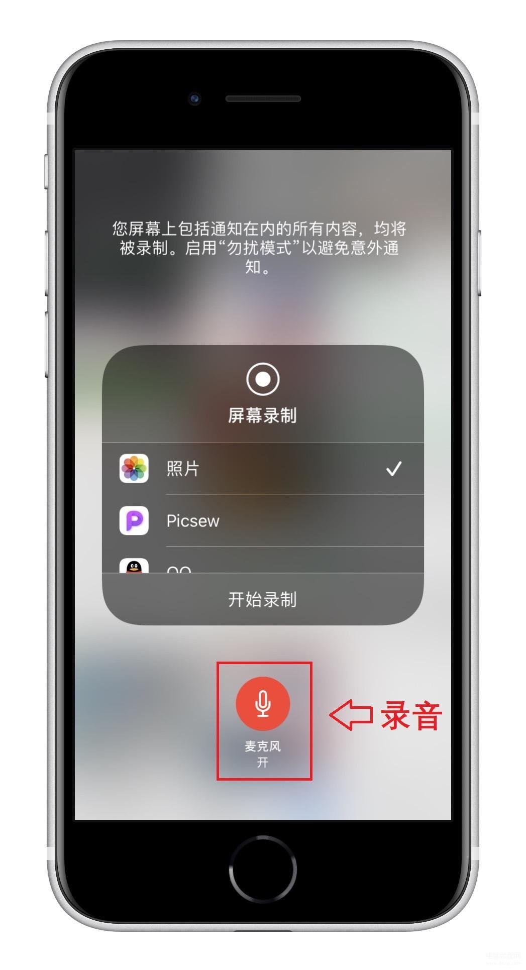 步骤一:iPhone的录屏功能隐藏在控制中心。打开面板后,找到白点按钮,点击,进入3秒倒计时,然后开始录屏。