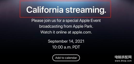 9 月 8 日,苹果公布了英文主题为「California streaming.」,中文主题为「加州来电」的 Apple 特别活动预告,宣布特别活动将于北京时间 9 月 15 日凌晨 1 点举行。