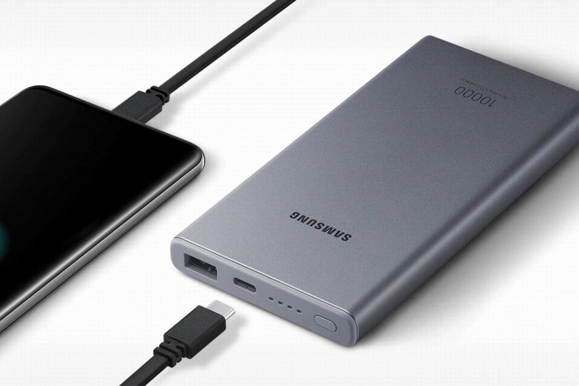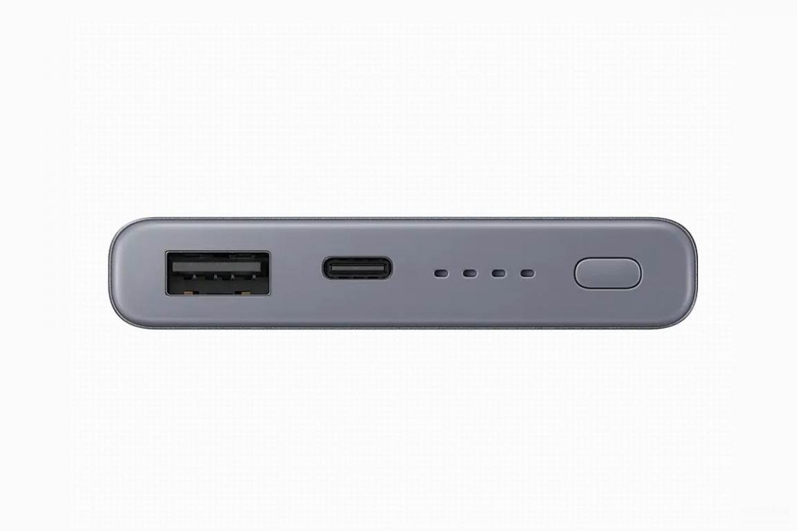 三星双向加速充电移动电源拥有一个USB-A输出接口、一个USB-C双向加速充电接口,带有四格电量指示灯,还有一个实体按键。支持PD、AFC、QC等常见协议,可与不同类型设备兼容。