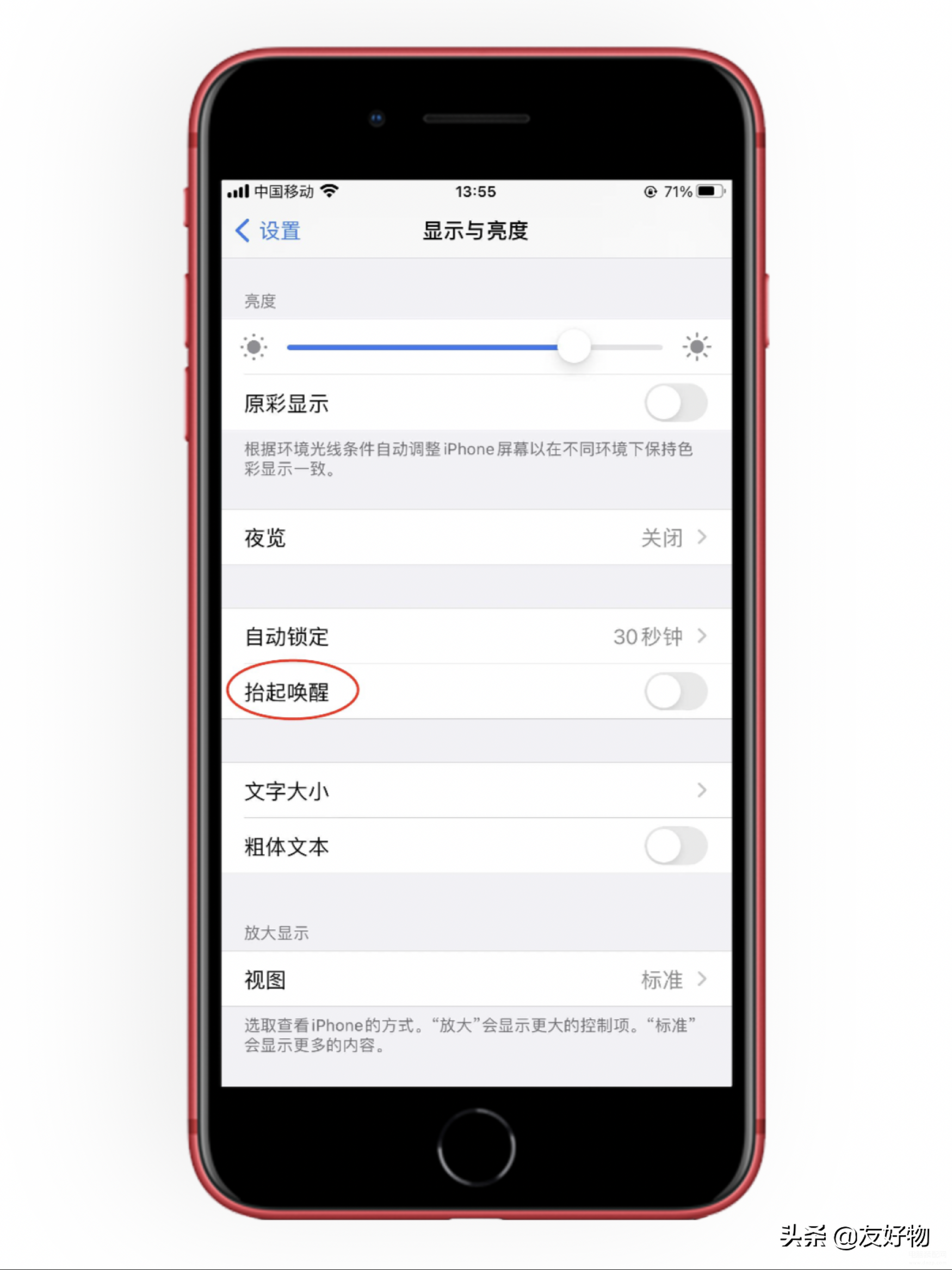 设置→显示与亮度→关闭抬起唤醒;