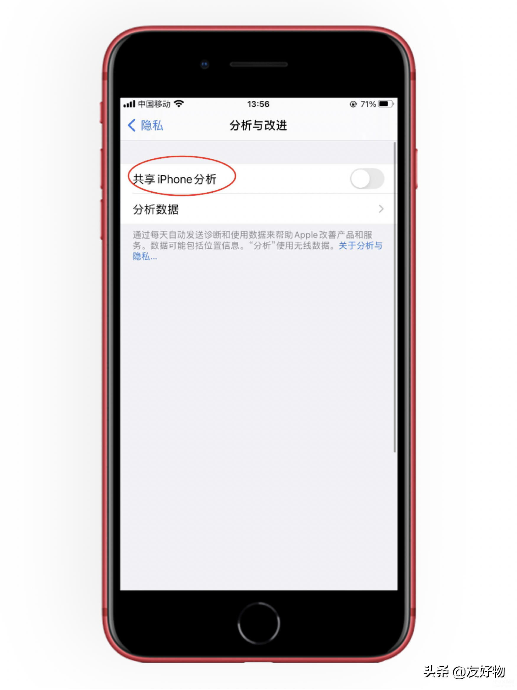 设置→隐私→分析与改进→关闭共享iPhone分析;