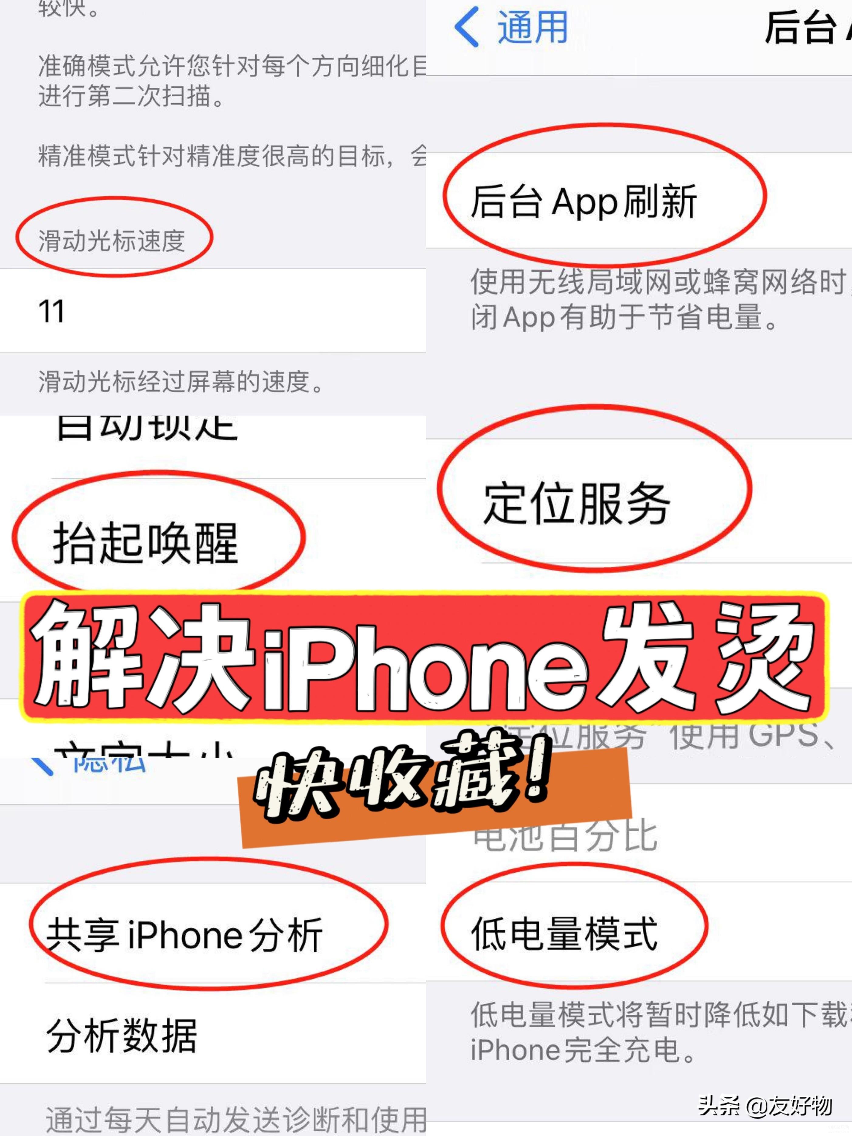 友友亲测后发现关闭这6项设置,可以有效的解决iPhone发热发烫的问题,小伙伴们赶紧试一试~