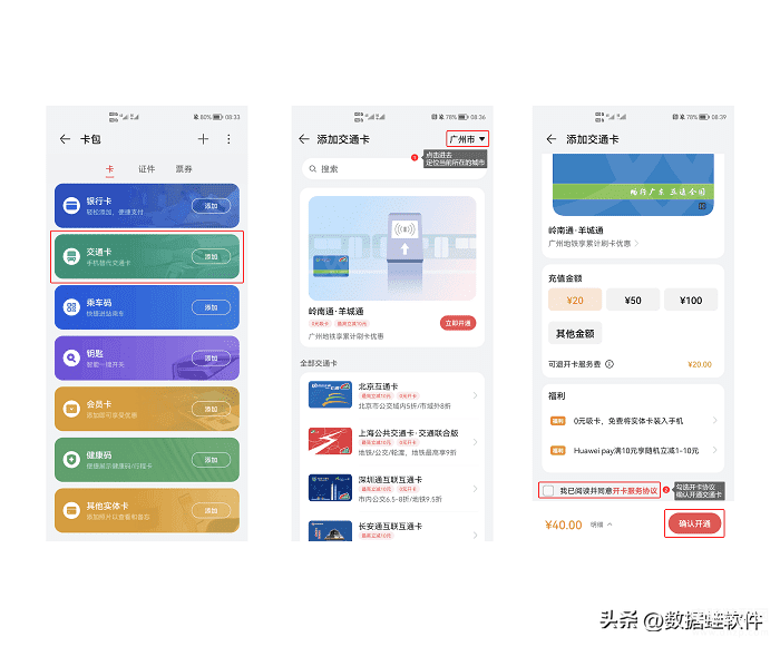 备注:很多卡片都支持交通联合功能,即使你开通的不是所在城市的交通卡,也是可以在这个城市使用