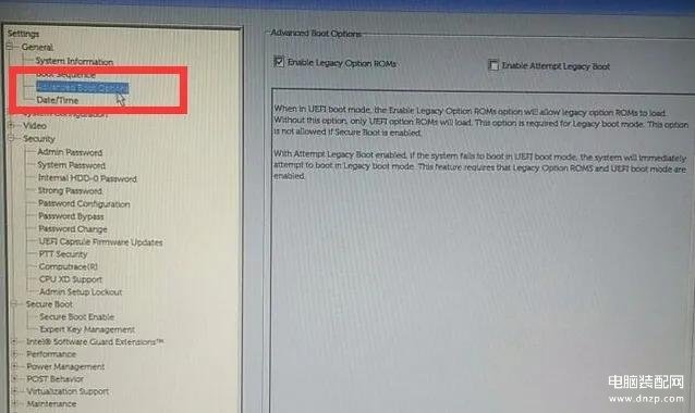 进入General目录,然后在下面找到Boot Sequence选项,在右边就是启动选项选项了,全都打勾起来,然后在下面选择Legacy,如下图所示: