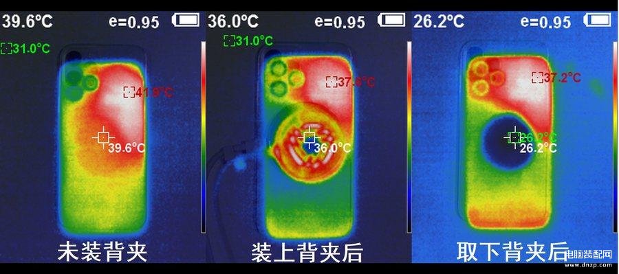 比如我们此前曾测试过的一款黑鲨针对iPhone 12定制的磁吸散热背夹。在运行王者荣耀时,手机默认边框温度已经接近42°C,中心温度也接近40°C,比较影响握感。但装上散热背夹后边框温度很快降低到了37.6°C,取下背夹时,中心温度也控制在了26.2°C。可见其无论对处理器性能、握持手感,还是电池寿命都能起到较好的保护作用。