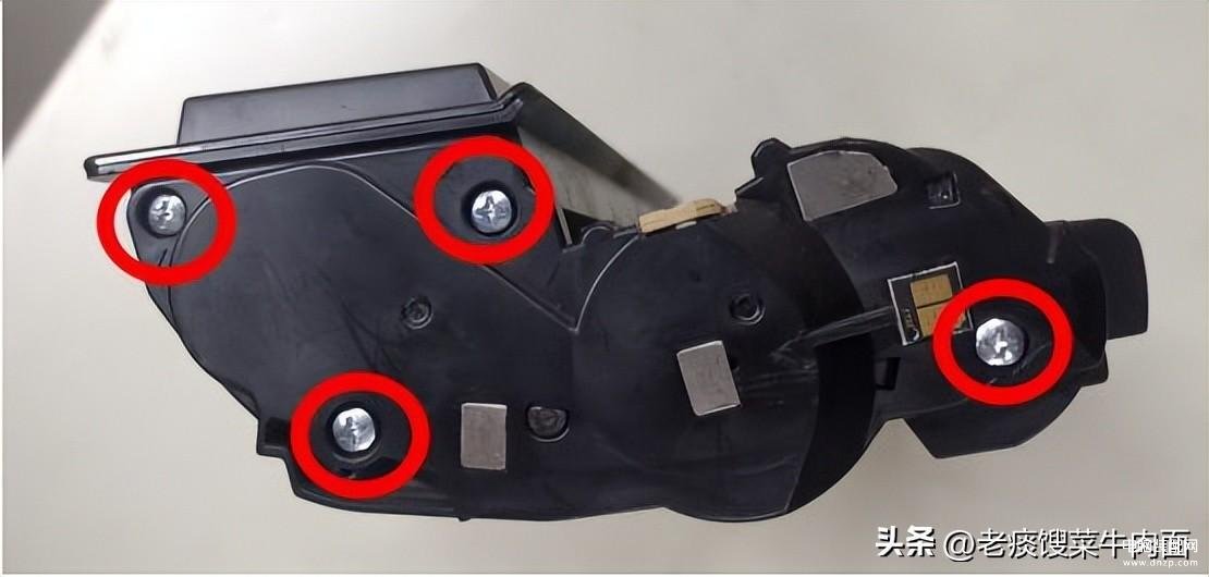 三、盖上上图中黑色的盖子,顺时间旋转盖子锁紧,避免漏粉,并盖上盖子上好4个螺丝。