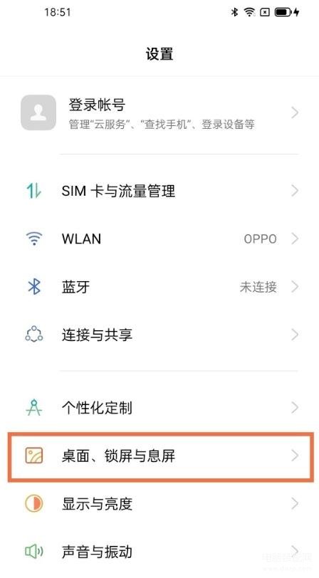 1、在手机设置中点击【桌面、锁屏与息屏】。