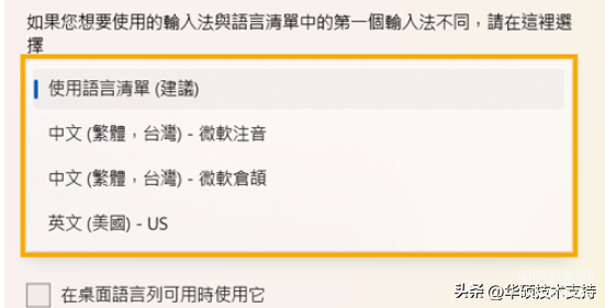 注: 此列表可能只会显示Windows有提供的输入法让您做选择。