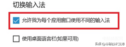 3,如果您想要各个应用程序使用不同的键盘/输入法,您可以勾选[允许我为每个应用窗口使用不同的输入法]。