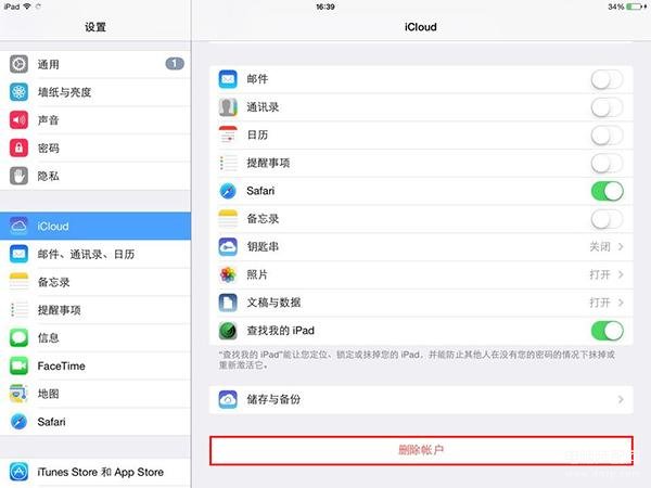 第二步:【删除账户】→【从我的iPad/iPhone删除】