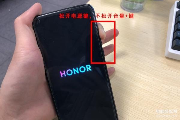 进入关机状态后,长按手机电源键+音量上键,等待手机亮屏。当屏幕亮起时,松开电源键,不过不要松开音量上键。