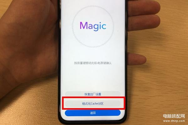 当出现Magic图标时,松开音量上键,接着我们就会来到刷机模式了。在这个模式中,【音量上下键】是控制光标移动,【电源键】是确定按钮,熟悉按钮后就可以开始清理锁屏密码了。
