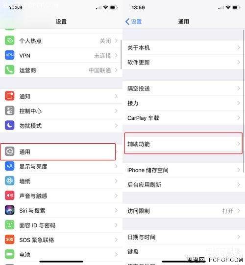 首先打开设置——通用——辅助功能。