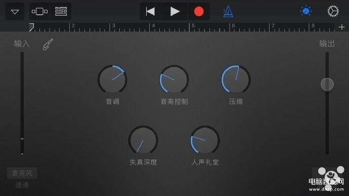 第三步:打开 GarageBand,选择录音机,点击左下角声音选项,进入界面点击左上角第三个按钮进入编辑。
