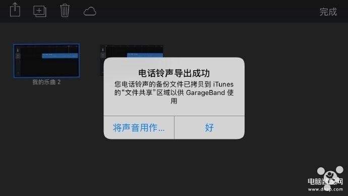 编辑完毕之后,点击左上角第一个倒三角的图标保存铃声。然后选中制作好的铃声文件,点击左上角第一个分享按钮,将铃声发送到电话铃声即可。