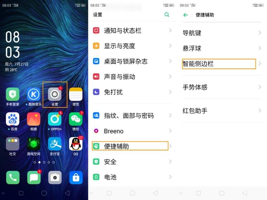 1、首先打开桌面【设置】-【便捷辅助】-【智能侧边栏】开启。