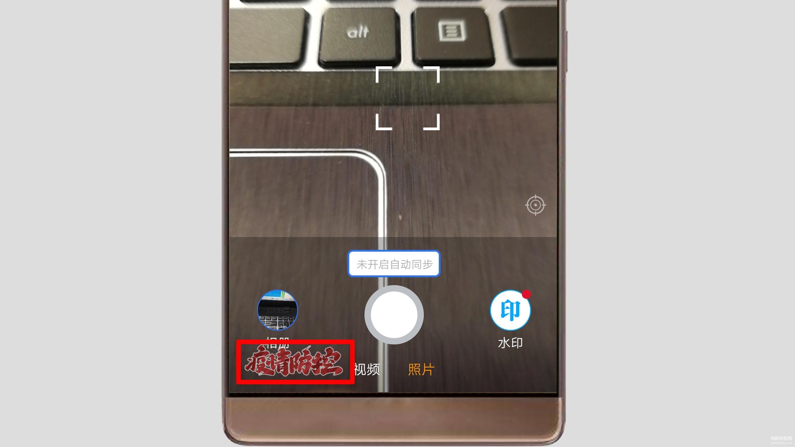 2、在经纬相机拍照界面,点击屏幕右下方的“水印”图标。