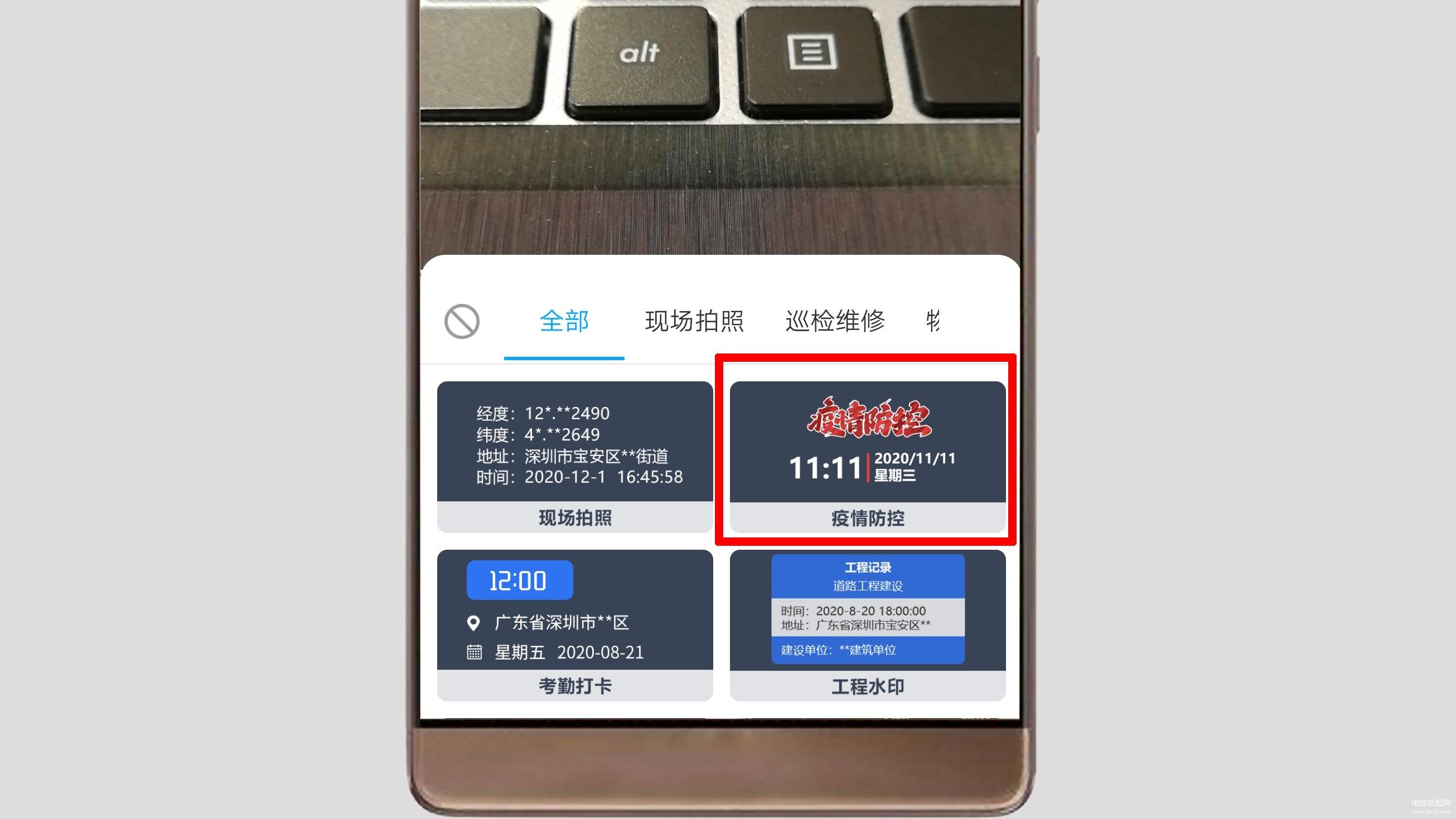 想要经纬相机在拍照时显示时间和地址,需要在拍照界面选择具有地址和时间的水印。