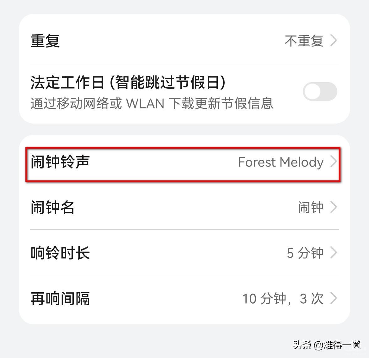 设置闹铃的时候,可以设置法定工作日智能跳过节假日,设置之后,在假期闹铃就会再提醒我们。可以安稳地睡个好觉。省去了节假日关闭闹钟的麻烦。