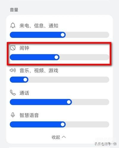 在手机设置里面打开声音和振动,在更多音量调节版块,单独调节闹钟的音量大小。