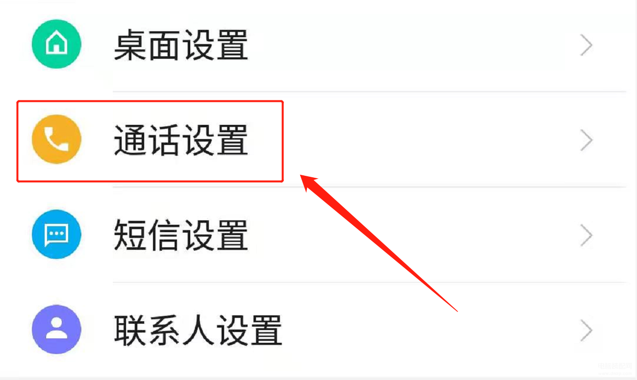 进入手机的设置选项以后,下拉设置菜单,找到“通话设置”选项。如下图: